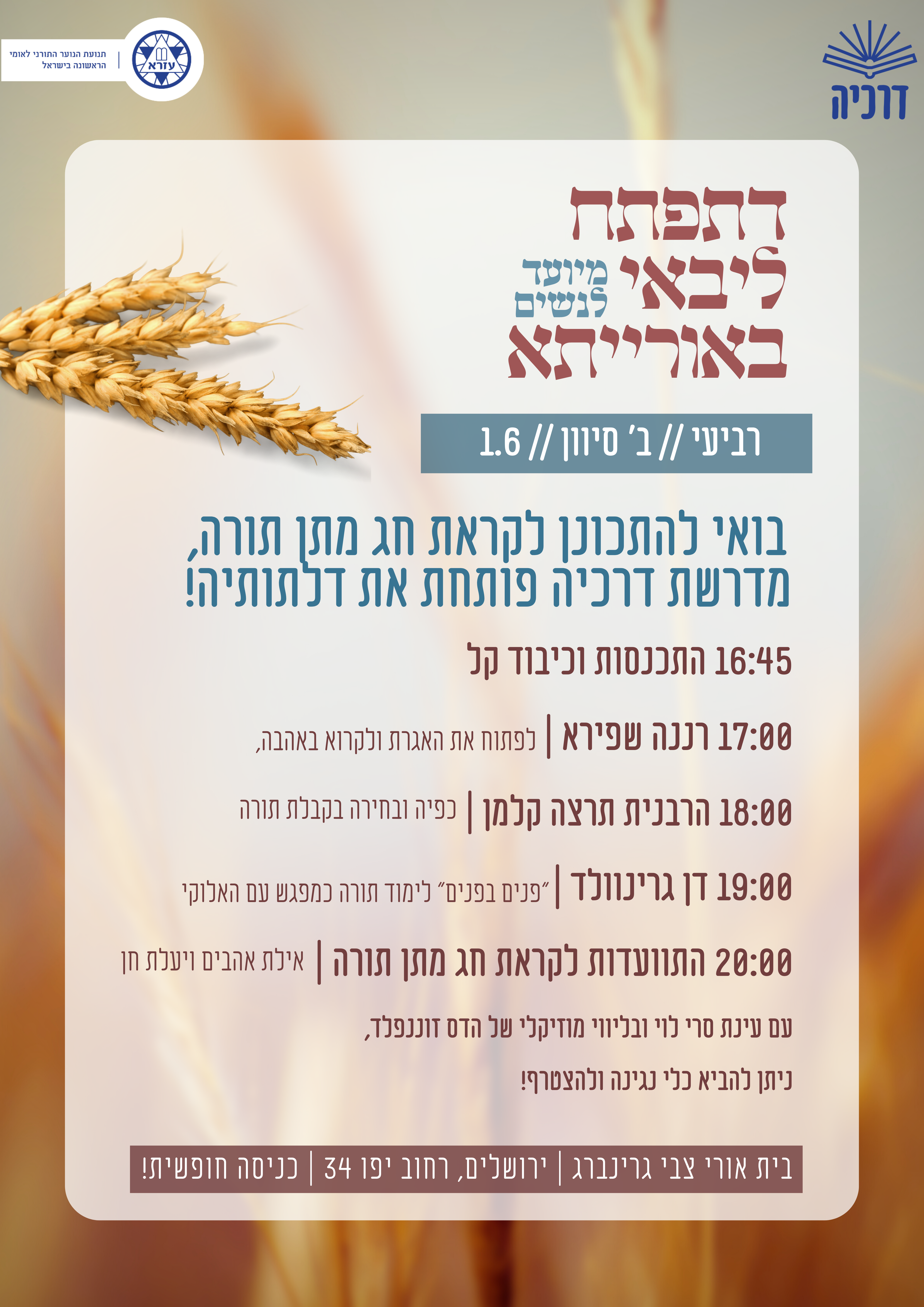 נשמח להיערך בהתאם לקראת ערב הלימוד, תודה על שיתוף הפעולה!