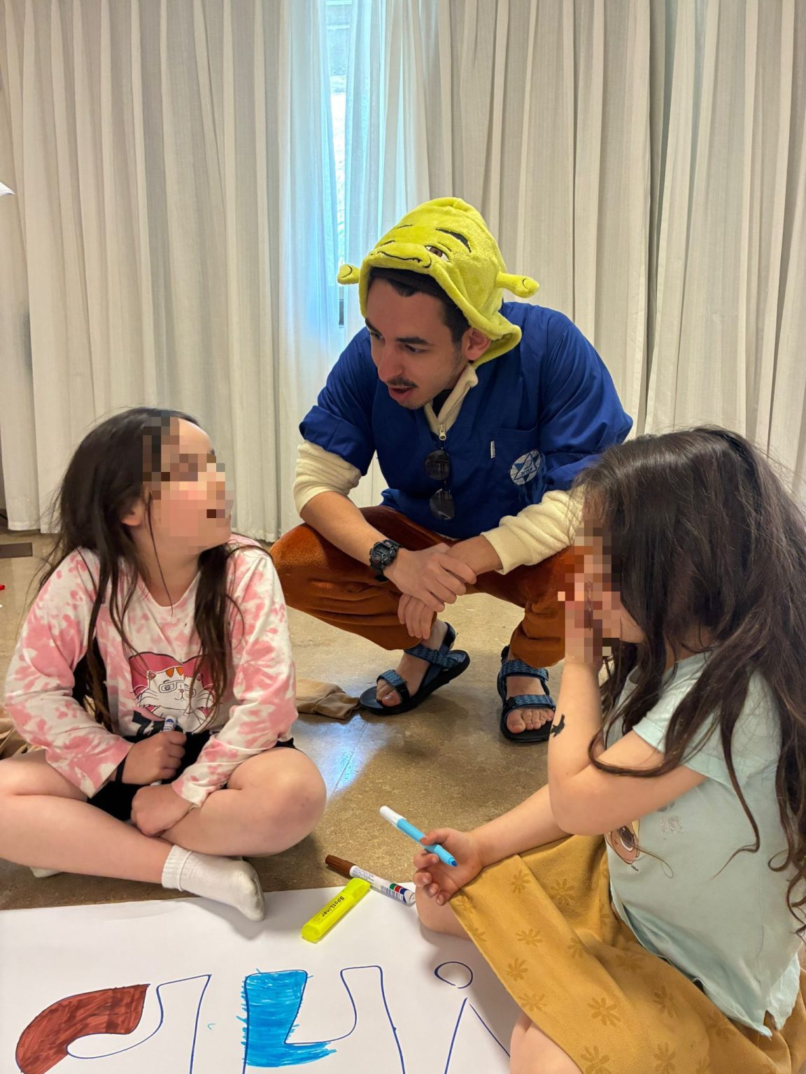 ברגע שהבנו שהמלחמה מביאה איתה גם פגיעה ברכוש, ומשפחות שמשאירות הכל מאחורה ומתפנות לבתי מלון- הגענו להיות יחד עם המשפחות, לתת את החיבוק הזה, להעסיק את הילדים- בפעילויות, משחקים, הרקדות, יצירות- כל דבר שיכול להעלות חיוך לילדים וליצור להם מקום בטוח, וגם להקל כמה שיותר על ההורים.
